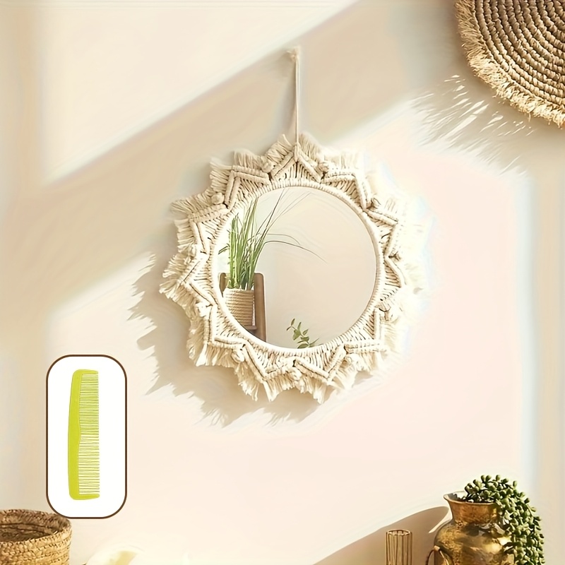 TEMU 1개 핸드메이드 마크라메 벽걸이 거울 - 거실, 침실, 사무실 및 크리스마스 파티 장식용 정교한 패브릭 태피스트리, 천연 어시톤 미러 월 데코