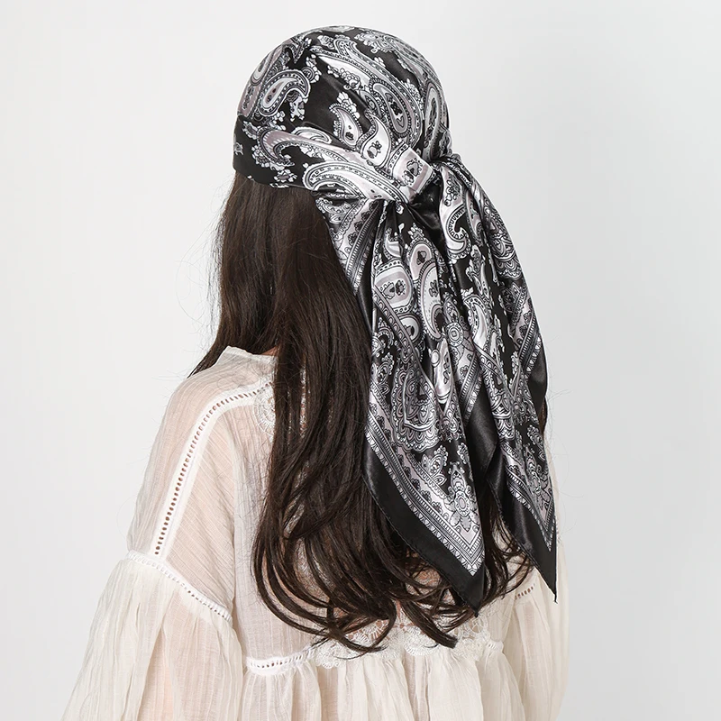 럭셔리 플로럴 프린트 여성 새틴 넥 스카프 스퀘어 헤어 스카프 푸라르 헤드밴드 숄 랩 네커치프 반다나 여성용
