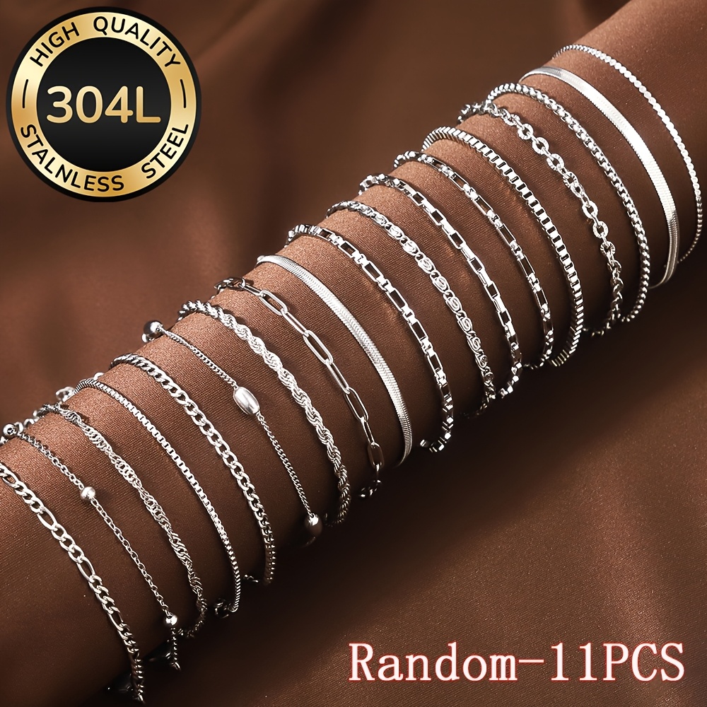 TEMU 11개 [랜덤] 여성용 패션 스테인리스 스틸 팔찌, 우아한 럭셔리 변색 없는 주얼리 세트, 데일리 웨어, 파티, 생일 선물에 완벽