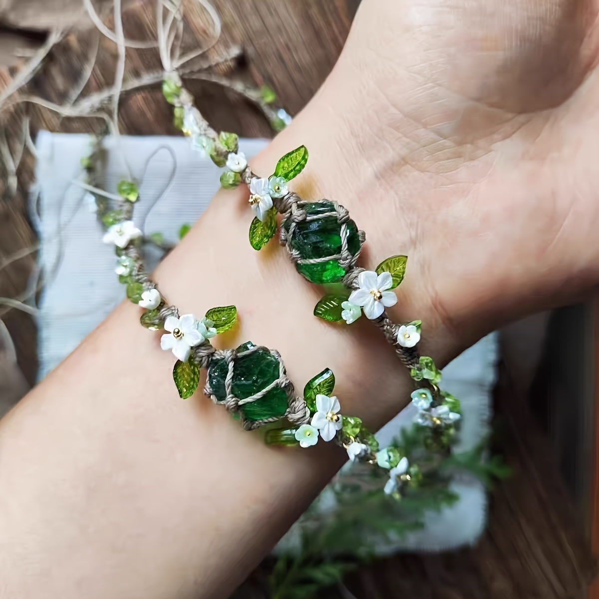 TEMU 수제 메쉬 파우치 스타일 핸드 로프 / 패셔너블 데일리 웨어 / 딥 풀 문라이트 플로럴 리스 팔찌 선물, 친구와 청소년을 위한