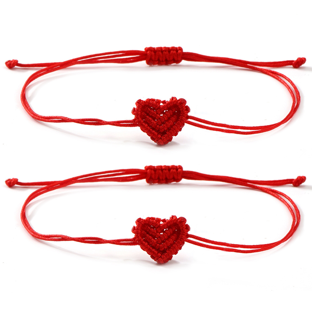 TEMU 여성용 패션 팔찌 2개, 레드 수제 손으로 짠 작은 하트 팔찌, 커플용 팔찌끈, 절친 팔찌, 주얼리, 서로를 지켜주세요, 사랑의 표현, 패션 액세서리, 데일리용 및 다용도 생일 선물용으로 적합, 추천 선물, 길이 조절 가능한 팔찌끈