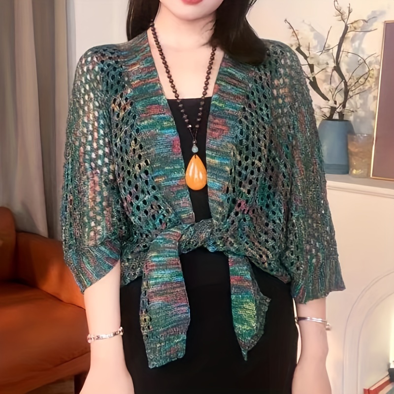 TEMU 여성용 시크 레이스 가디건 - 삼계절 레이어링 숄 랩, 반투명 레이스 오버레이, 기계 세탁 가능한 여성용 경량 스웨터, 오피스 & 파티, , 크롭 슬리브 디자인, 섬세한 소재, 봄 패션, 빈티지 스타일, 통기성 좋은 원단, 다목적 랩, 패션 애호가