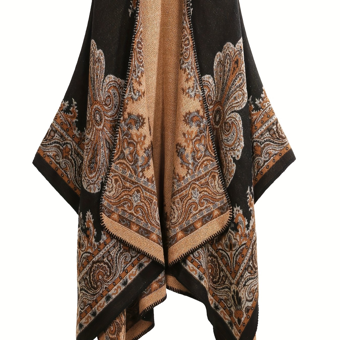 TEMU 플러스 사이즈 에스닉 패턴 숄 탑, 빈티지 웜 오픈 프런트 커버 업 탑 겨울 & 가을, 여성 플러스 사이즈 의류