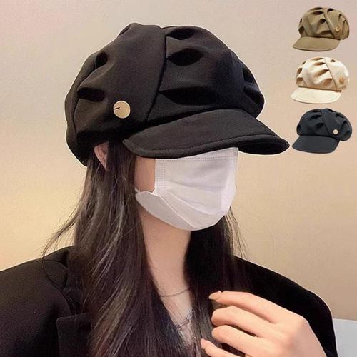 여자 3컬러 빈티지 클래식 벙거지 주름 단추 팔각모 WFG5Q39