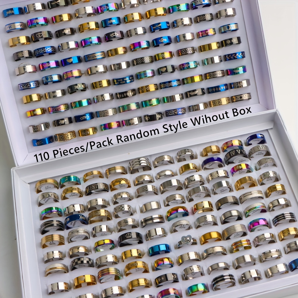 TEMU 55/110피스 패션 스테인리스 스틸 링 세트, 데일리웨어와 파티용 다용도 손가락 주얼리, 랜덤 스타일, 선물, 박스 미포함, 청소년용