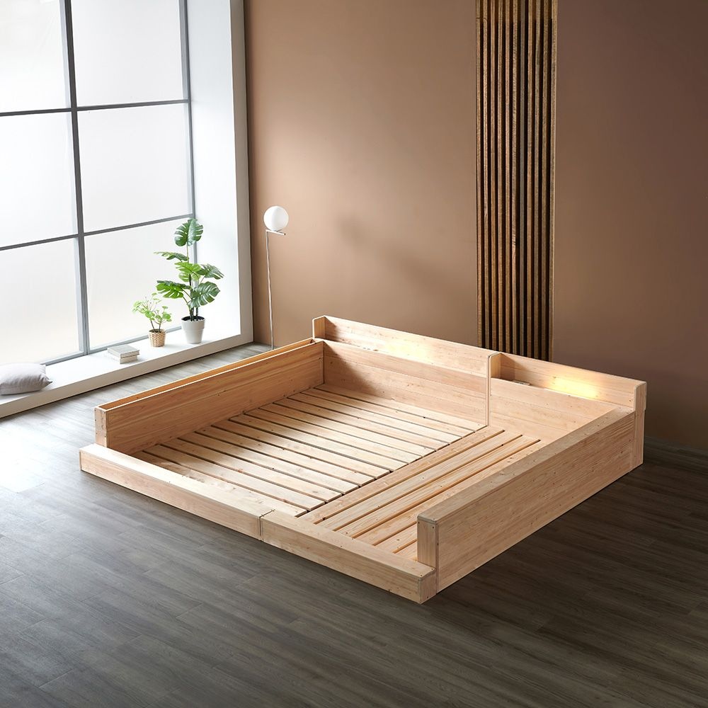 편백 포레스트 둥지형(D) LED패밀리 침대프레임 편백깔판 (SS+SS/S+Q/SS+Q)