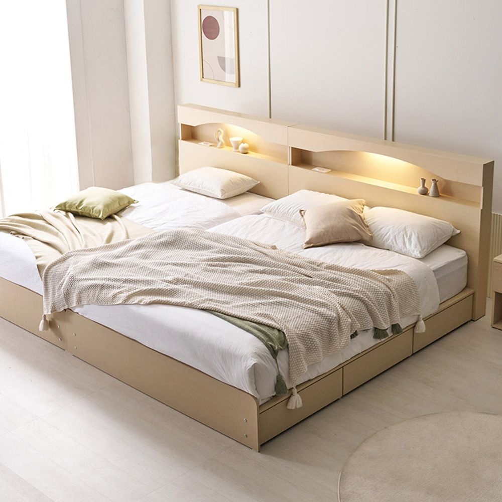 린제이 빅서랍 LED 패밀리 부부 트윈 수납 침대프레임 (매트리스 선택)