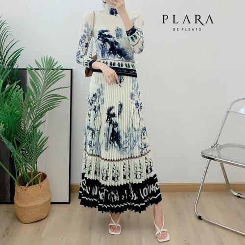 [플라라]플라라 (88까지)하이넥플리츠잉크블라우스+스커트SET