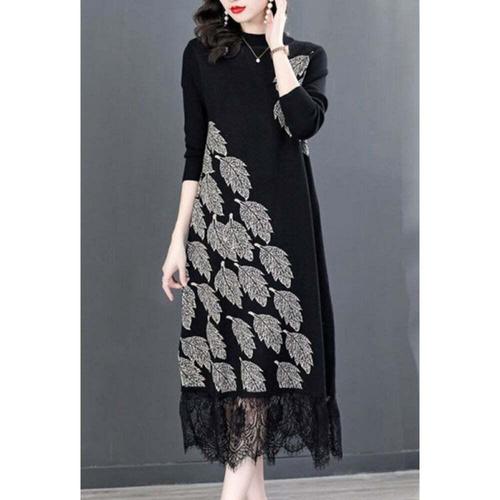 [모노무드]모노무드 9723 여성 가을 간절기 나뭇잎 패티 밑단 레이스 니트 원피