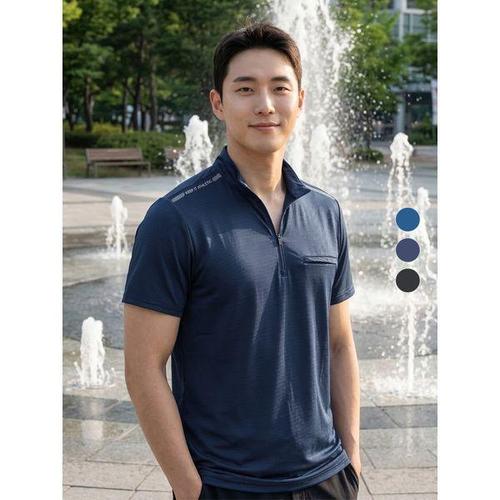 [이지바이]남성 에어리포켓 기능성 스포츠웨어 냉감 반팔 집업 티셔츠(M7SS17)