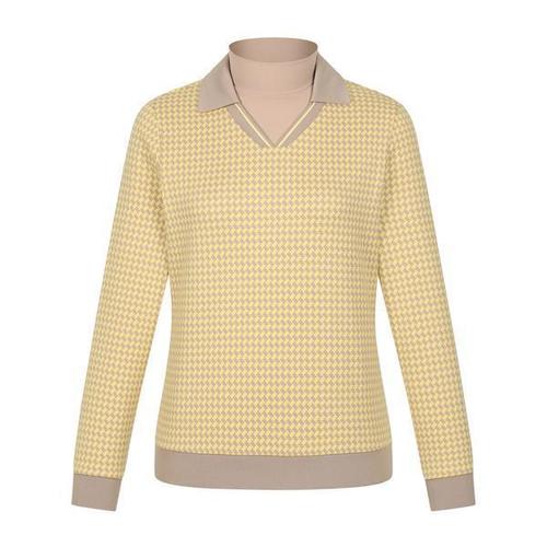[팬텀][팬텀골프] 여성 하운드투스 패턴 반목 카라 긴팔티셔츠 221E3TH105_BG