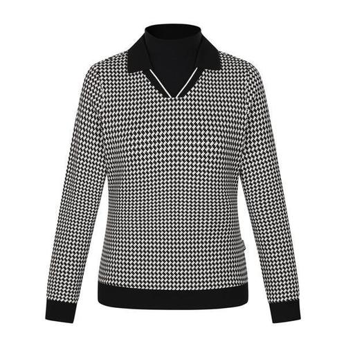 [팬텀][팬텀골프] 여성 하운드투스 패턴 반목 카라 긴팔티셔츠 221E3TH105_BK