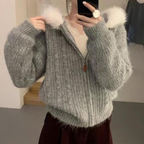 시온 여성 앙고라 퍼 니트 가디건