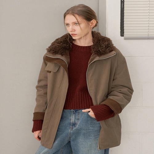 [써스데이아일랜드]퍼 믹스 후드 야상 점퍼(T238MJP232W)
