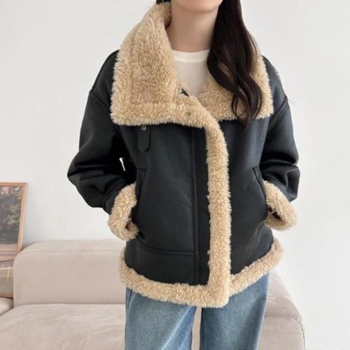 [신상오픈런]여성 하이넥 두꺼운 퍼안감 무스탕 재킷