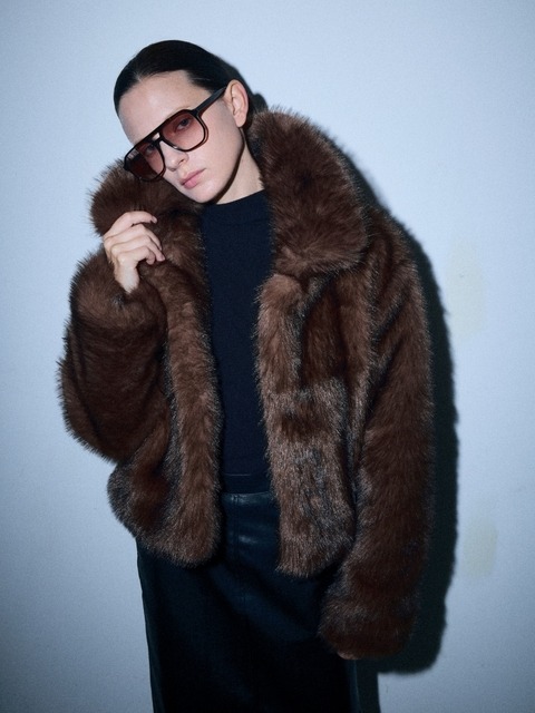 W17294 겹쳐입은듯 카라 앞 가죽패치 퍼코트 퍼자켓