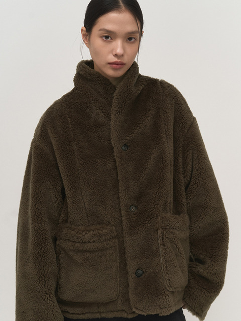 [다잇템]여자 만다린 무스탕 오버핏 보온 퍼코트 자켓