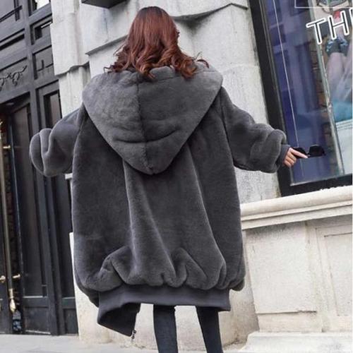 퍼코트 보송보송 후드 퍼 점퍼 여자 미디 코트 집업 자켓