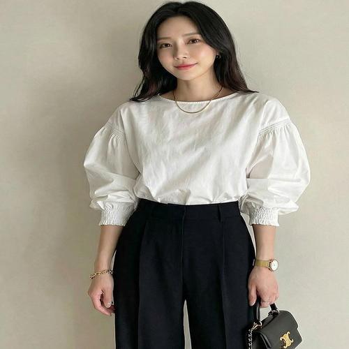 [드레스허그]버블 퍼프 빅소매 블라우스