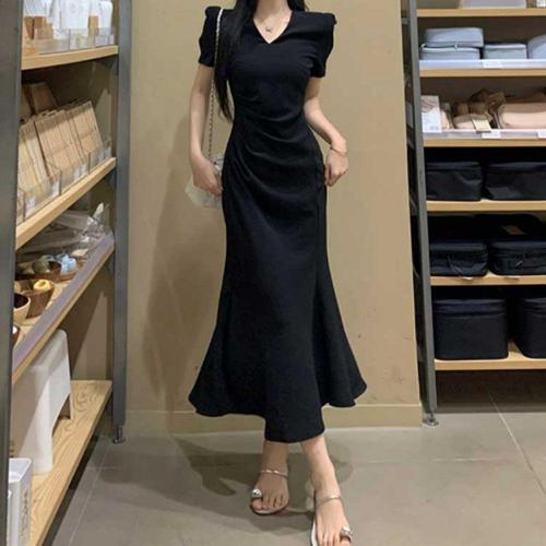 [오너클랜]인기상품 여성 머메이드 블랙 반팔원피스 퍼프 여름 하객룩 [WFLL7ZI_260304]
