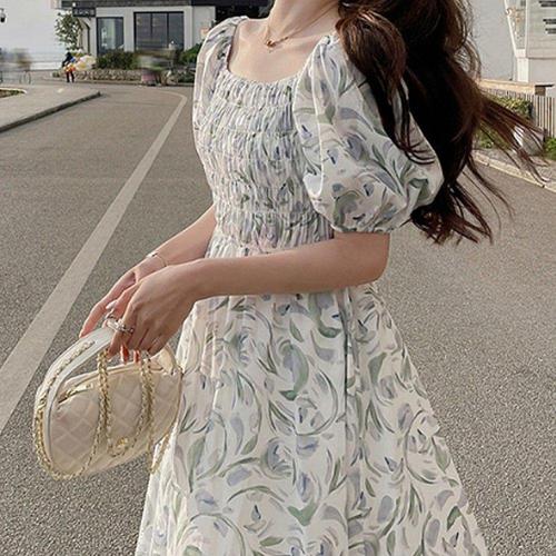 여성 러블리 미니원피스 퍼프소매 플라워패턴 여름