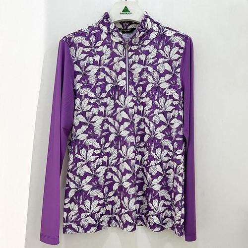 [그린조이]플라워 프린트 반지퍼 티셔츠 퍼플 여성 GP24KL22W