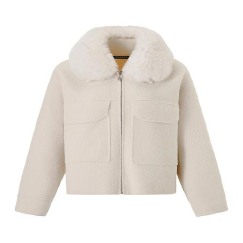 ROYALBELLE 여성 퍼 배색 진주 장식 아우터 우아한 실루엣 세련된 스타일 기모 숄 E0092311