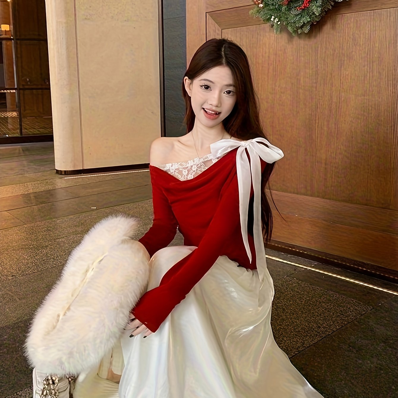 TEMU 여성용 우아한 오프숄더 블라우스 - 레이스 트림 장식 긴팔 셔츠, 파티, 데이트, 사무실에 적합한 포멀 & 데일리 시크 탑 - 여성 의류, 데이트룩, 여성스러운 디자인, 섬세한 디테일, 풀오버 탑, 패션 애호가