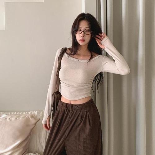 [다잇템_패션]여자 팬츠 단가라맨투맨 펀칭자수 넓은 세트