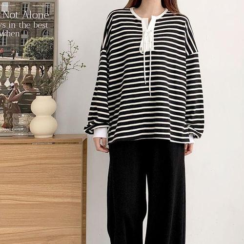 [다잇템]여자 팬츠 펀칭자수 넓은 단가라맨투맨 세트
