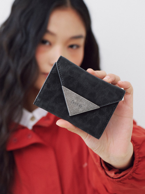 [페넥] CRINKLE TRIANGLE FRAME WALLET - BLACK