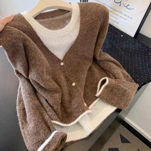 [아리엘스타일]페이크레이어드 투톤 브이넥 엘사드레이어드니트