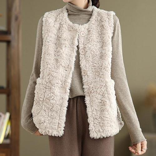 쁘띠꼬모 여성 페이크퍼 버튼 포인트 따뜻한 털 조끼 데일리 레이어드 YXC580610