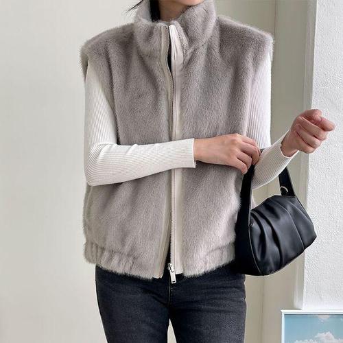 [신상오픈런]여자 겨울 부드러운 페이크퍼 밴딩 하이넥 집업 조끼