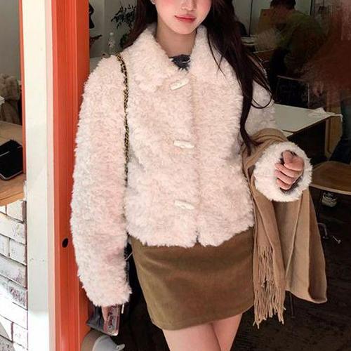 [엘린무드]츠키 폭신 인조퍼 페이크퍼 부드러운 버클 숏 털 자켓 (3COLOR)