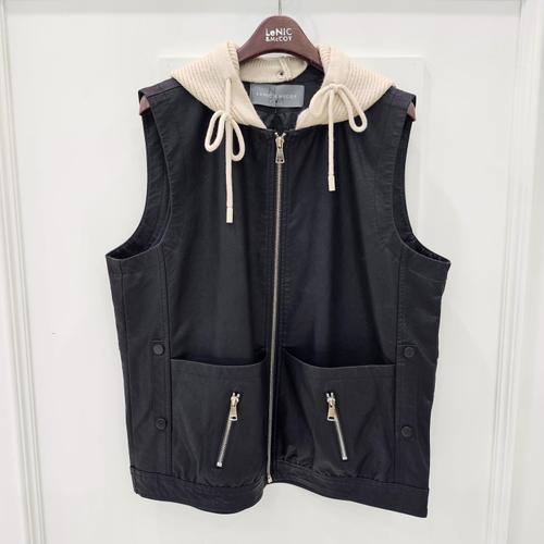 [르니앤맥코이]르니앤맥코이 니트후드 페이크 가죽 베스트 MM10VT004_GN