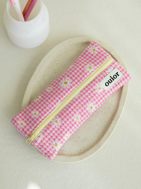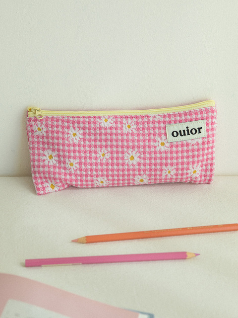 [위올] 위올 플랫 펜슬케이스 - 체크플라워 핑크(중간지퍼)
