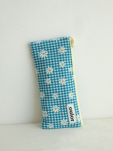 [위올] 위올 플랫 펜슬케이스 - 체크플라워 틸(중간지퍼)