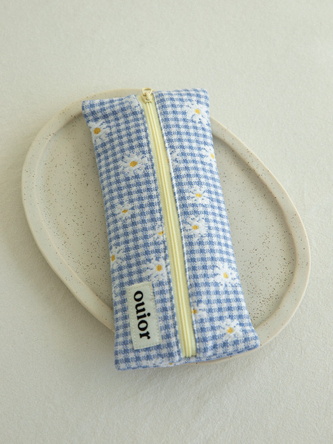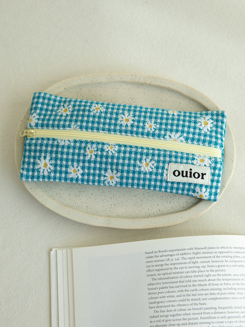 [위올] 위올 플랫 펜슬케이스 - 체크플라워 소라(중간지퍼)