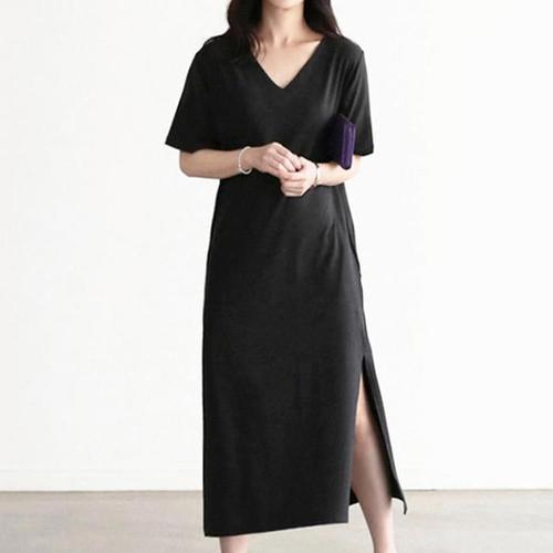 [오너클랜]인기상품 여름용 편안한 스판 블랙 반팔 롱 캐주얼 원피스 휴양지 스타일 [WFLKXD2_260304]