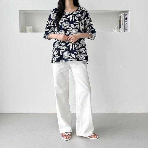 [에이치플러스몰]커플 편한 썸머 와이드 패턴 바지 슬림핏 5부