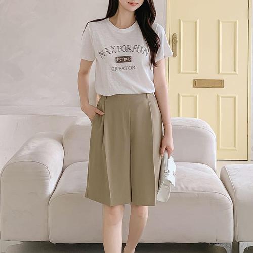 여성 장마 넓은 4부 편한 핀턱 스타일 숏팬츠