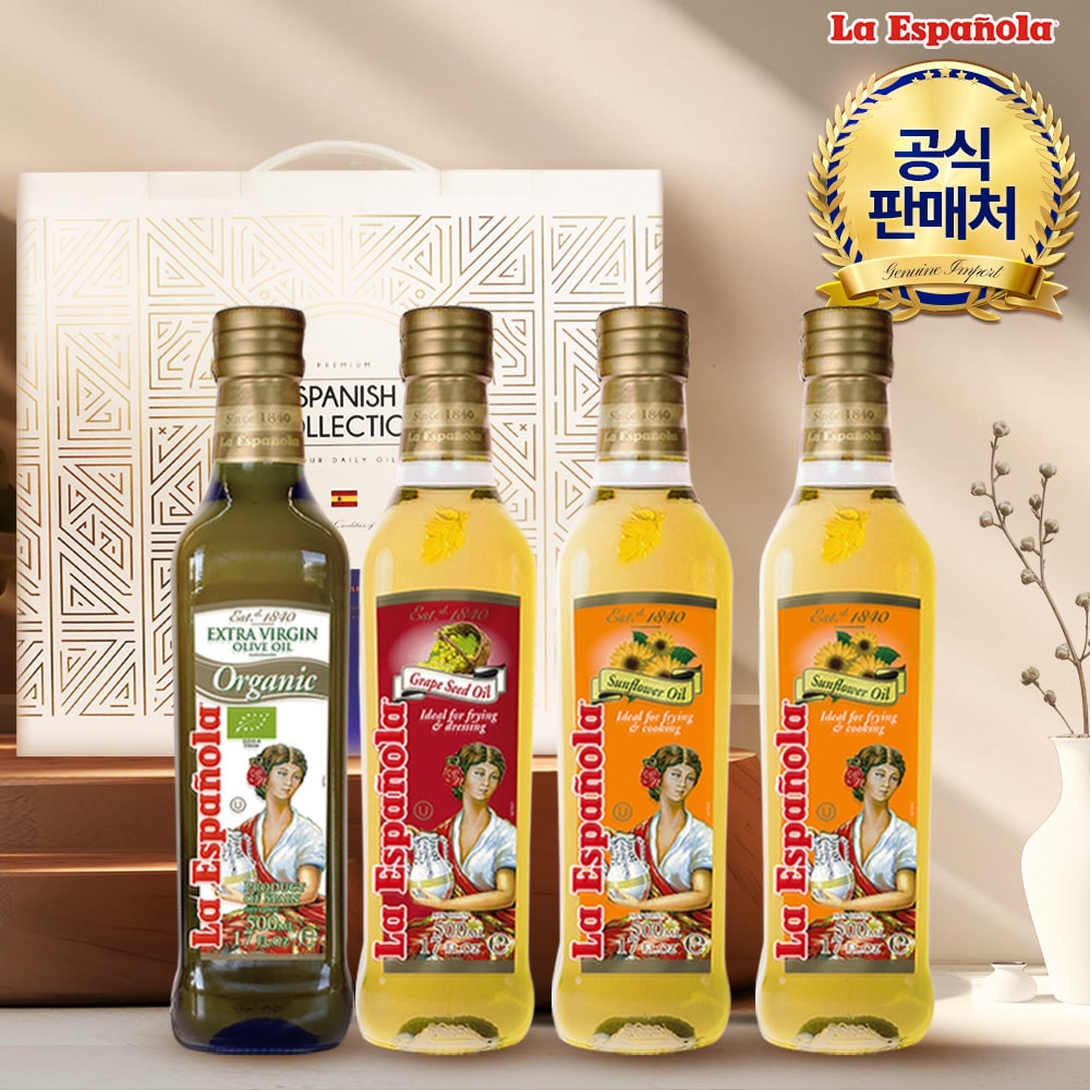 에스파뇰라 유기농 올리브오일 아보카도오일 포도씨유 해바라기유 500ml 4종 선물세트