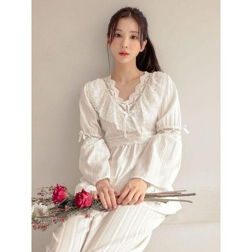 [쿠비카]숄더 셔링 브이넥 투피스 여성잠옷 W293