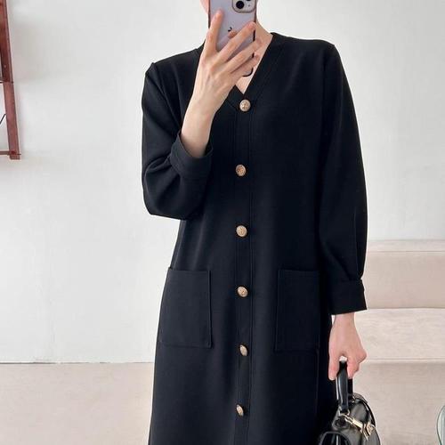 [다잇템]여자 금장버튼 벌룬 FW 더블포켓 롱원피스 (10994422A)