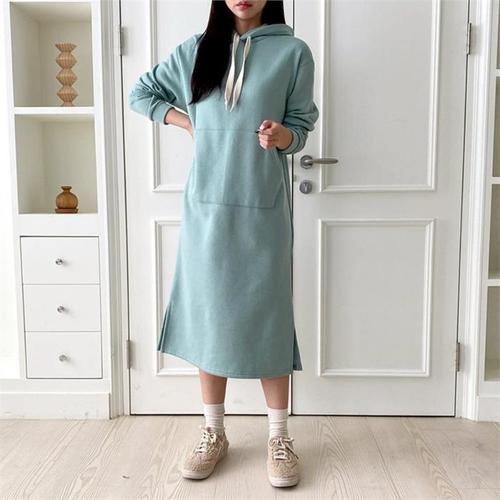 [다잇템]여자 캥거루포켓 트임 FW 등원룩 보온 롱원피스 (9097800A)