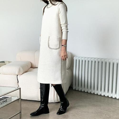 [다잇템]여성 슬리브리스 FW 트위드 더블포켓 롱원피스 (11148805A)