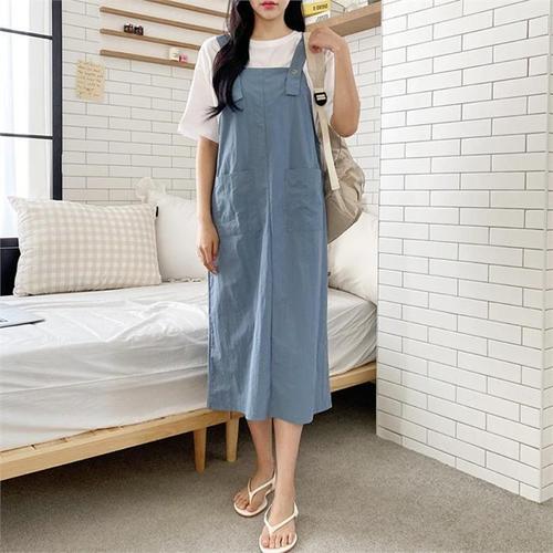 [다잇템]여자 롱 버튼 H라인 앞포켓 서스펜더 원피스 (10079960A)