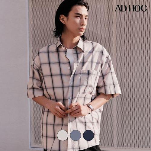 [에드혹]남성 원 포켓 세미 루즈 핏 반팔 셔츠(HA4SS02)