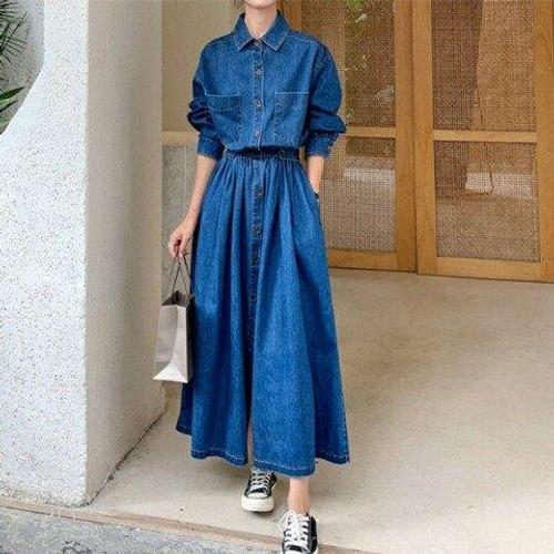 파라노말샵 / 데님 셔츠 포켓 롱원피스(파라노말샵)